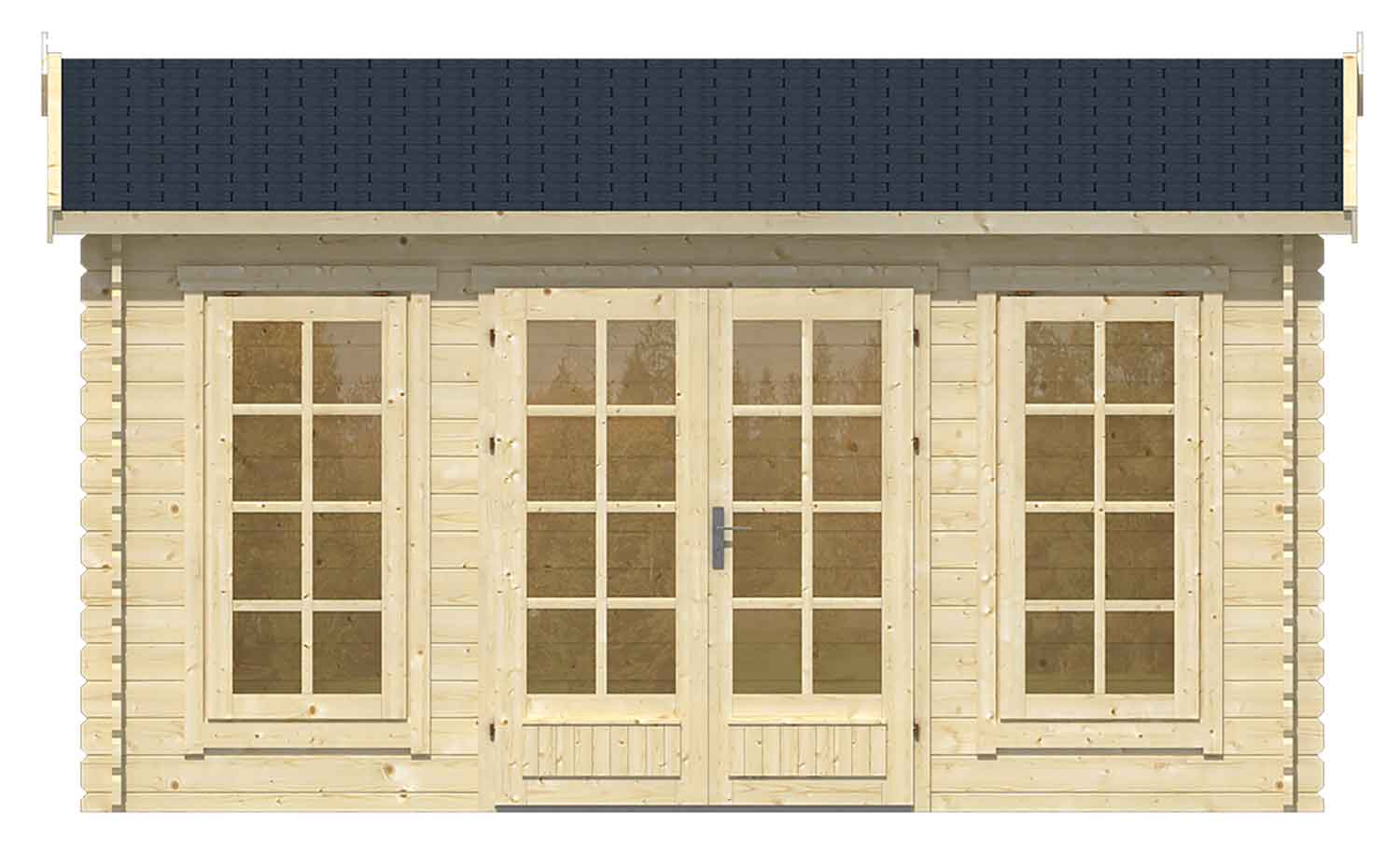 Fenster, Türen und die Dacheindeckung sind nicht im Lieferumfang enthalten. Es wird 18,6 m² Dachpappe benötigt