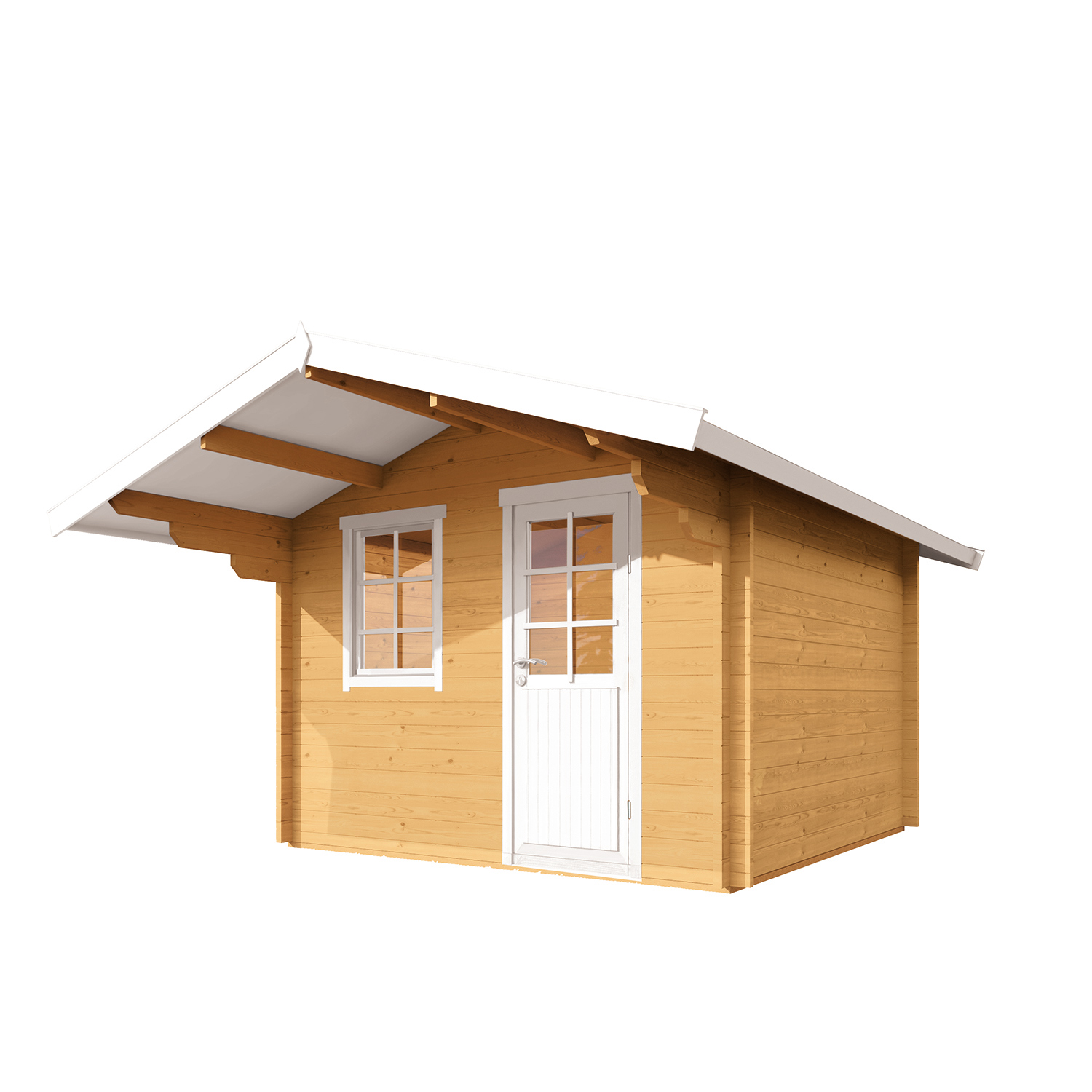 nordischer Fichte 44 mm Wandstärke Einzeltür Isolierverglast 70 x 187 cm 1 Isolierglas-Einzelfenster zum öffnen 64 x 97 cm Wandaußenmaß Haus (B x T): 300 x 245 cm inkl.Fußboden...