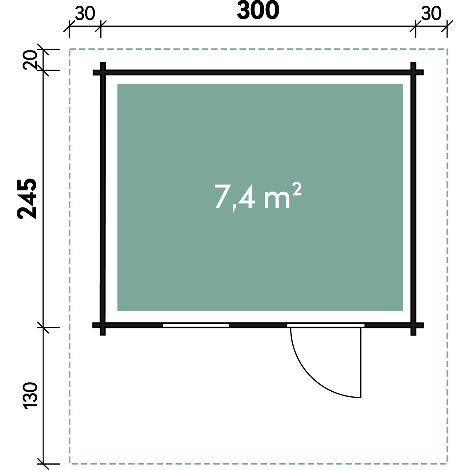 • Wandaußenmaß Haus (B x T): 300 x 245 cm