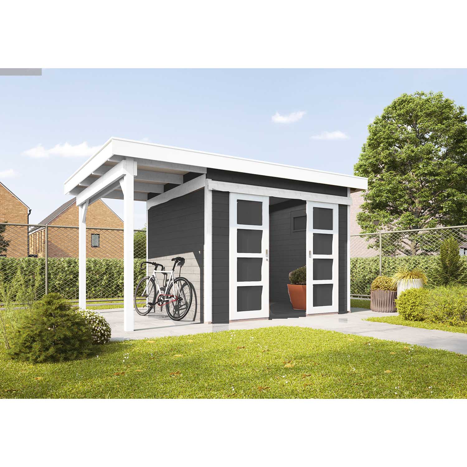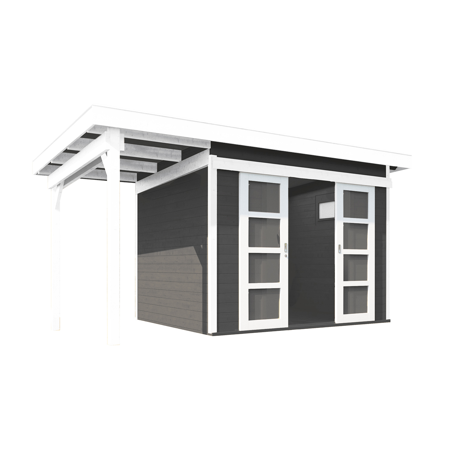 nordische Fichte 28 mm Wandstärke Pultdach inkl. Fußboden mit Seitendach Weiß Wandaußenmaß (B x T) 300 x 240 cm Farbe Felsgrau Produktinformation Das optisch überaus...