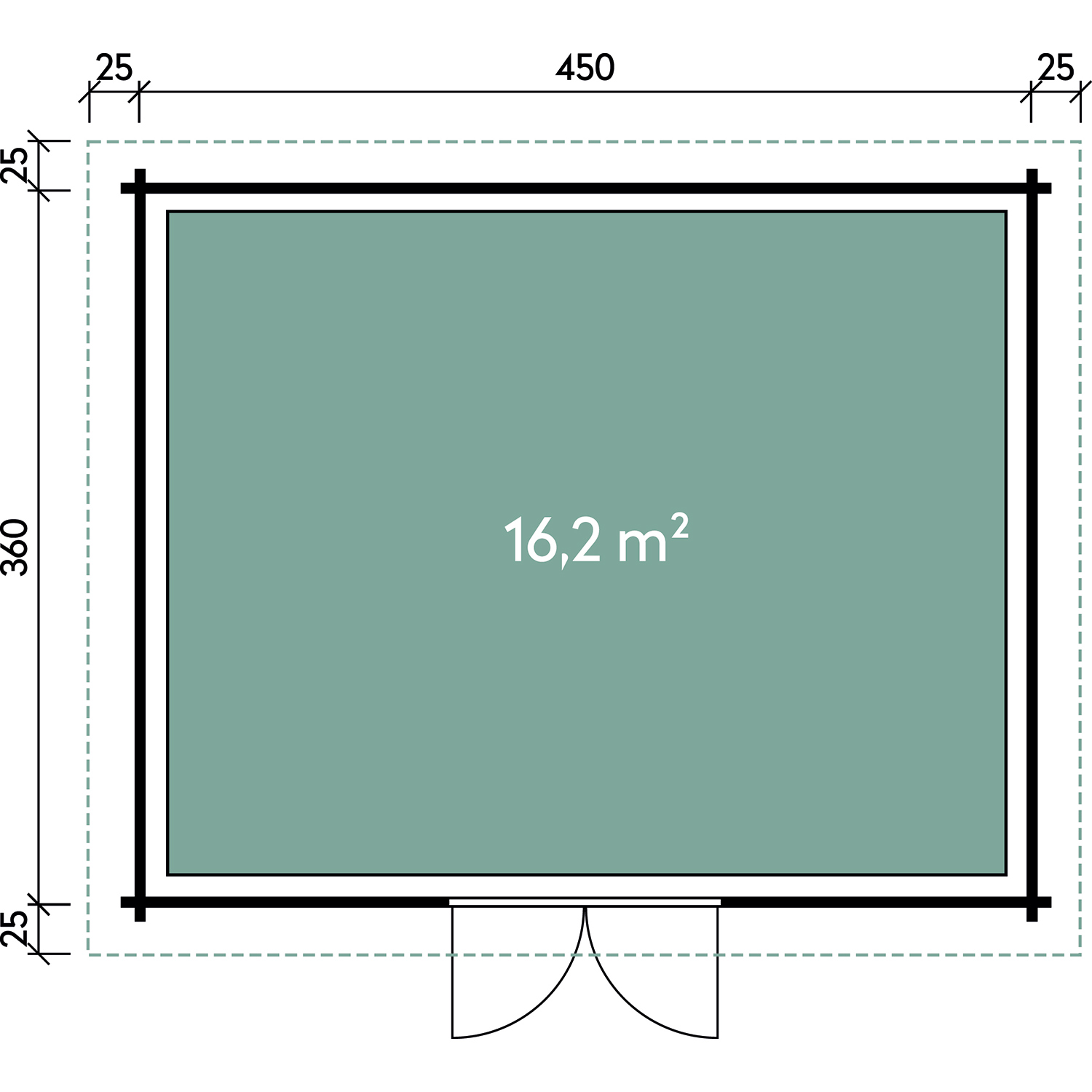 • Wandaußenmaß Haus (B x T): 450 x 360 cm