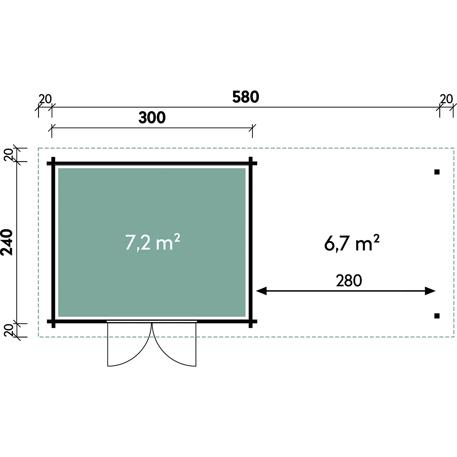 • Wandaußenmaß (B x T) 300 x 240 cm