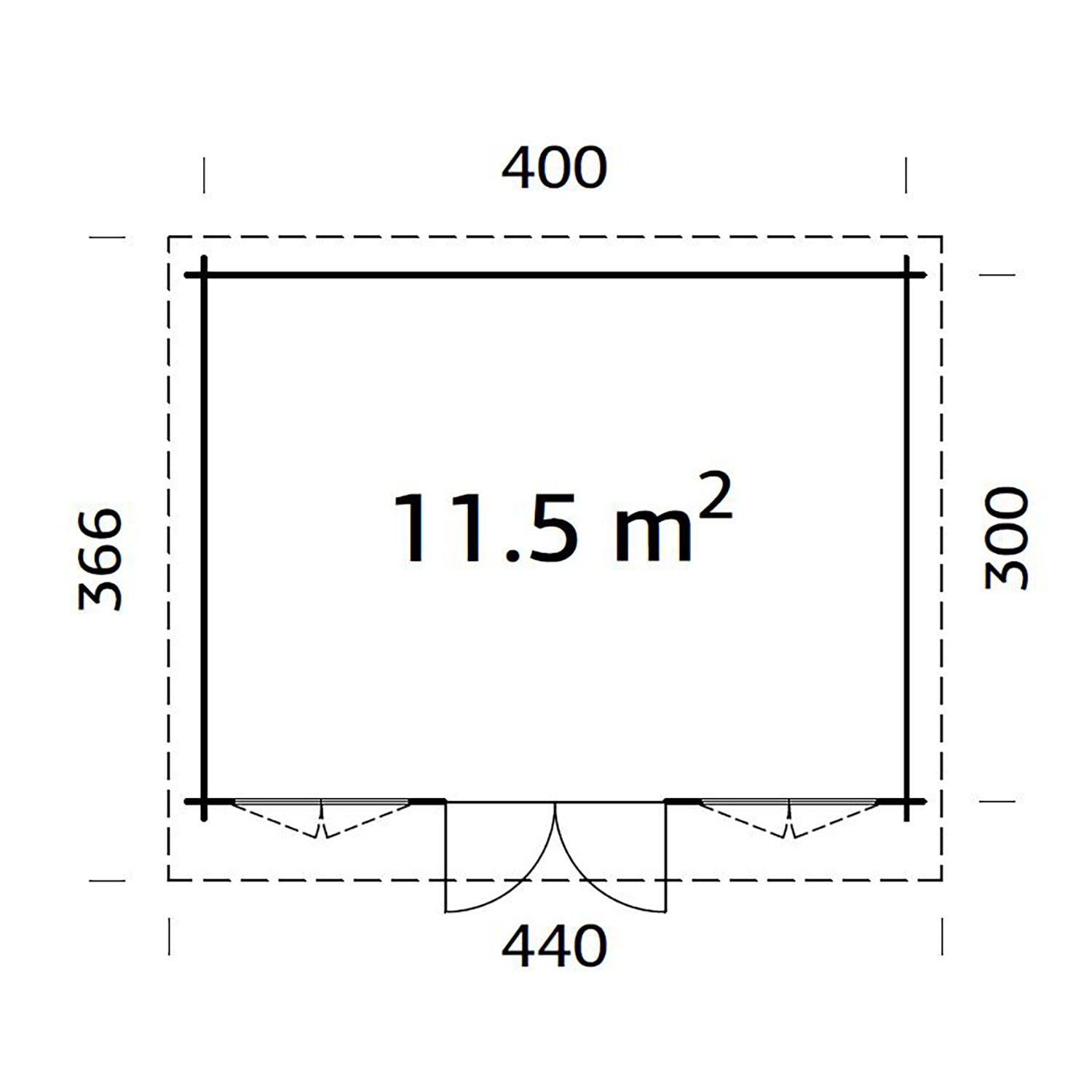 Wandstärke: 34 mm Material: nordisches Fichtenholz Dachform: Pultdach Farbbehandlung / Farbe: hellbraun tauchgrundiert Grundfläche: 11,5 m² Umbauter Raum: 25,6 m³ Tür: Doppeltür Tür /...