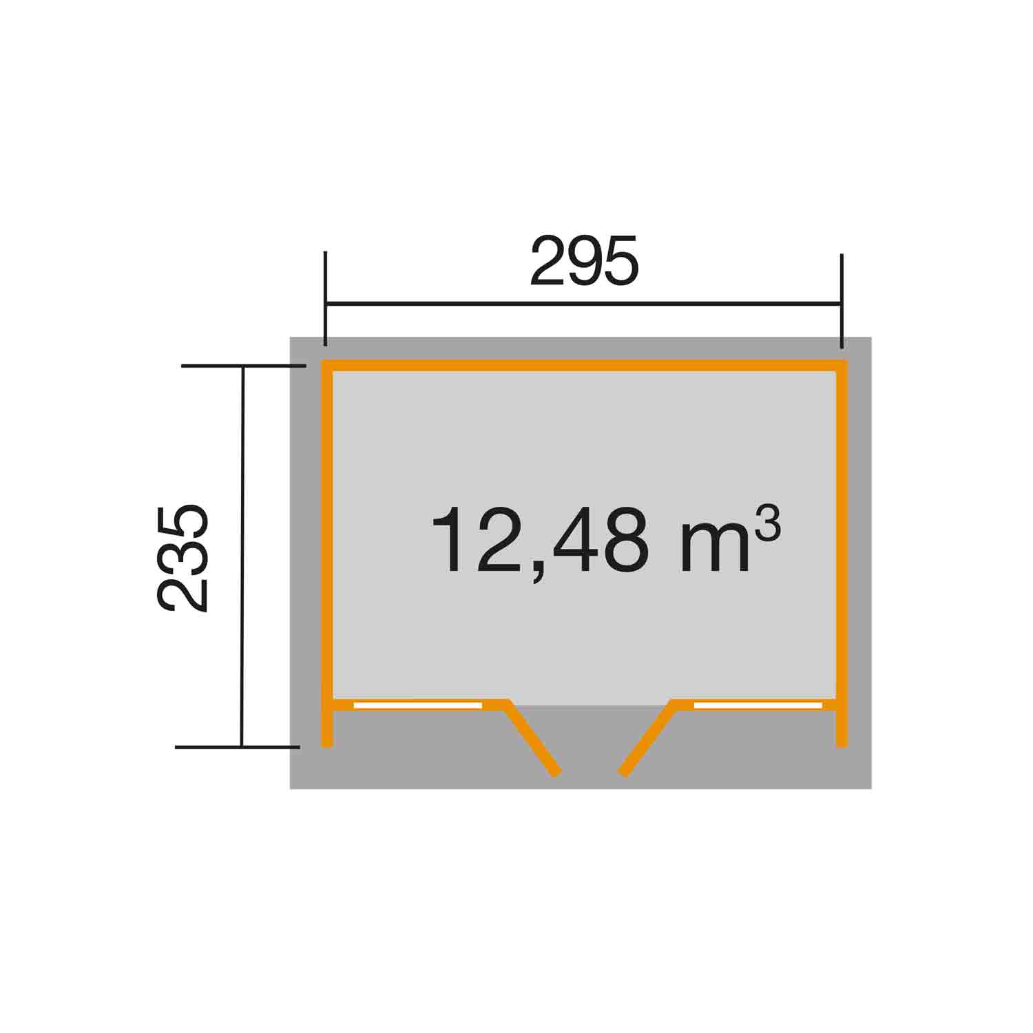 Mit einem Außenmaß von B 305 x T 250 x H 227 bietet es viel Platz für entspannte Stunden im eigenen Garten. Die Nutzfläche des Gartenhauses beträgt 6,93 m².