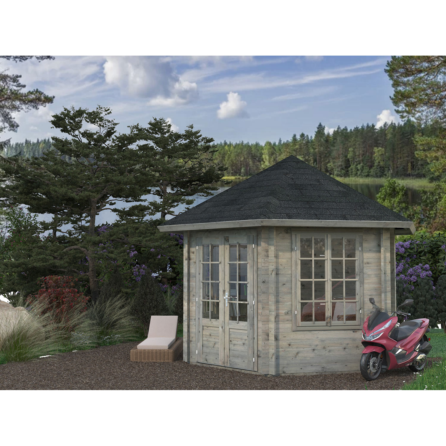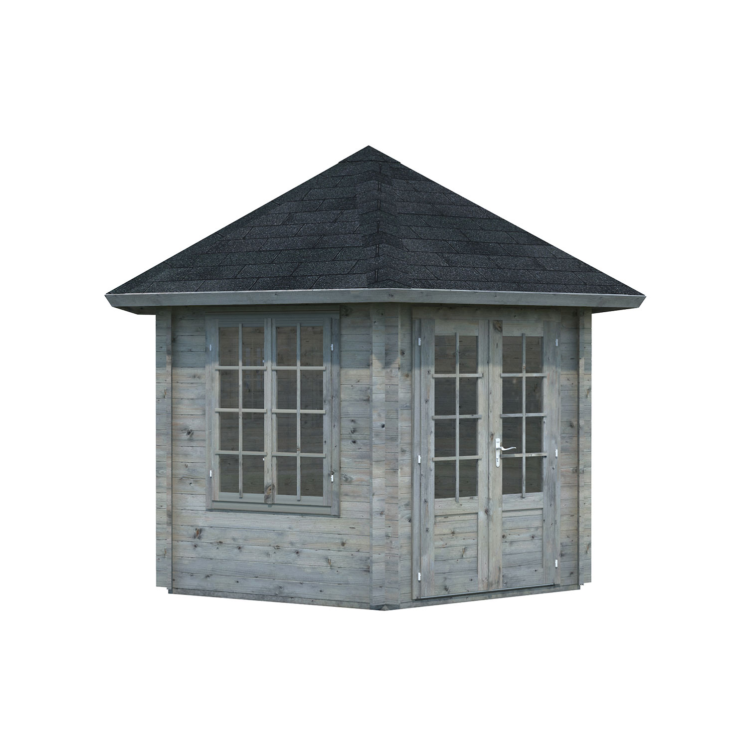 Der Palmako Pavillon Hanna hat eine Grundfläche von 7,6 m² und eine Wandstärke von 34 mm. Genießen Sie entspannte Grillabende oder kleine Feiern unter den traumhaft schönen Pavillons von Palmako. Das klassische Design passt sich einfach perfekt an dem jedem Garten an. Das nordische Fichtenholz ist grau tauchgrundiert und durch die Herstellung aus robustem Massivholz besonders langlebig und beständig.
