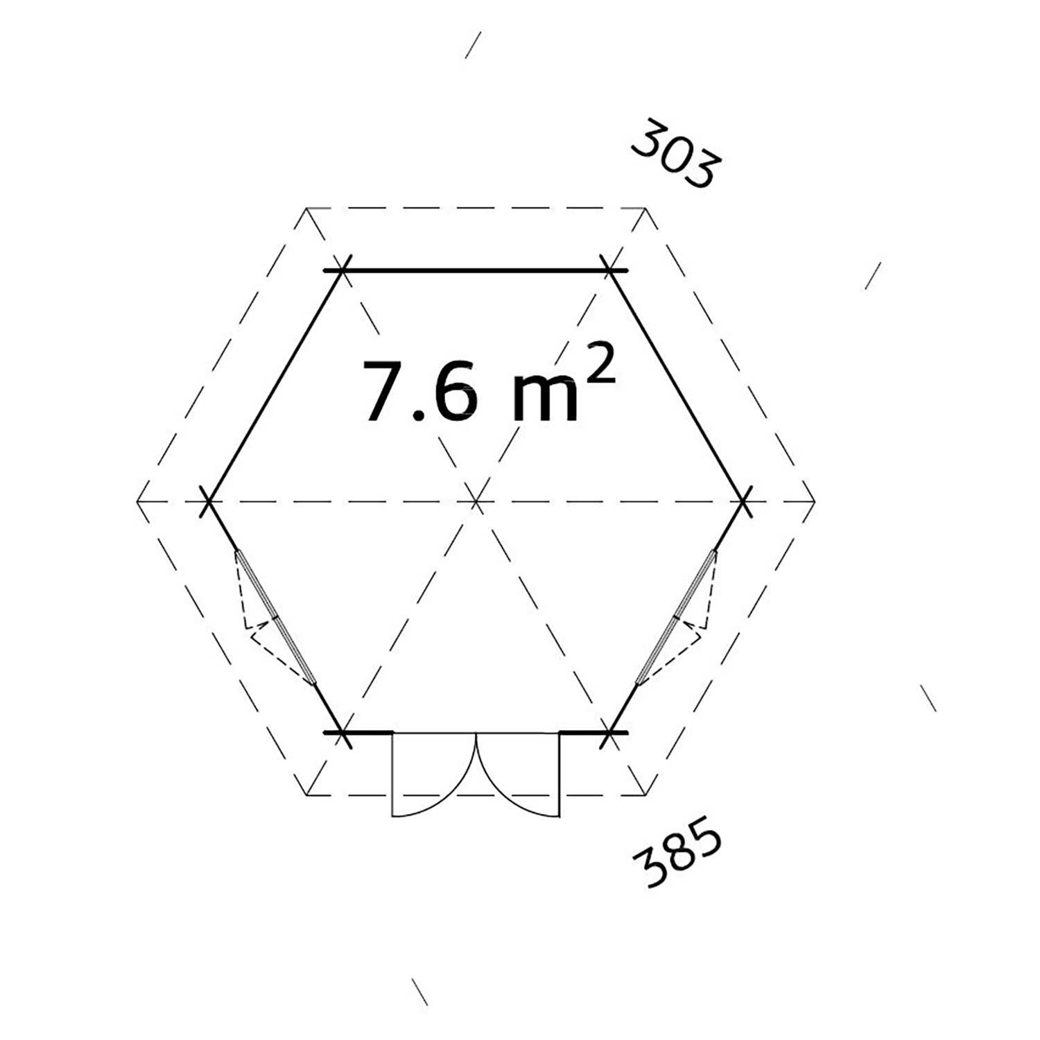 Wandstärke: 34 mm Material: nordisches Fichtenholz Dachform: Zeltdach Farbbehandlung / Farbe: grau tauchgrundiert Grundfläche: 7,6 m² Umbauter Raum: 19,6 m³ Tür: Doppeltür Tür /...