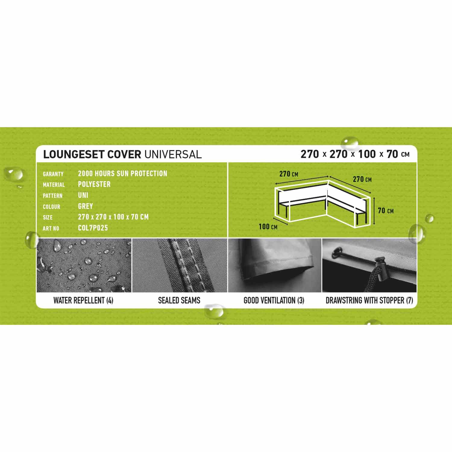 • Maße: 270x270x100x70 cm