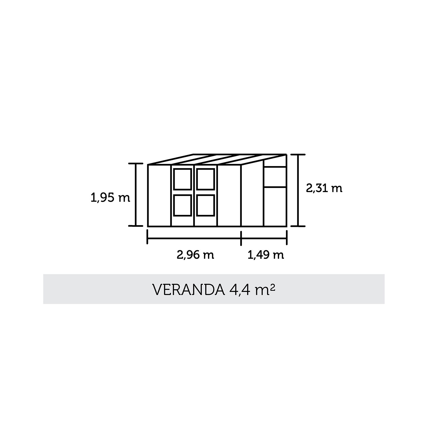 Juliana Anlehn-Gewächshaus Veranda 4,4 m² Aluminium | 3 mm Sicherheitsglas
