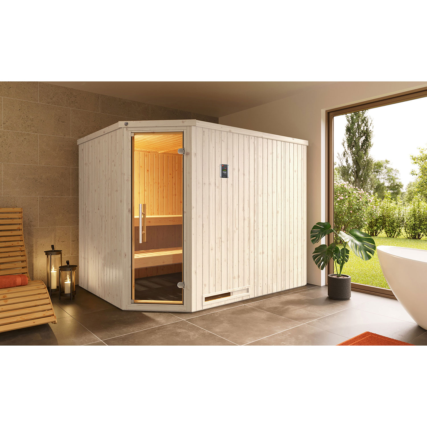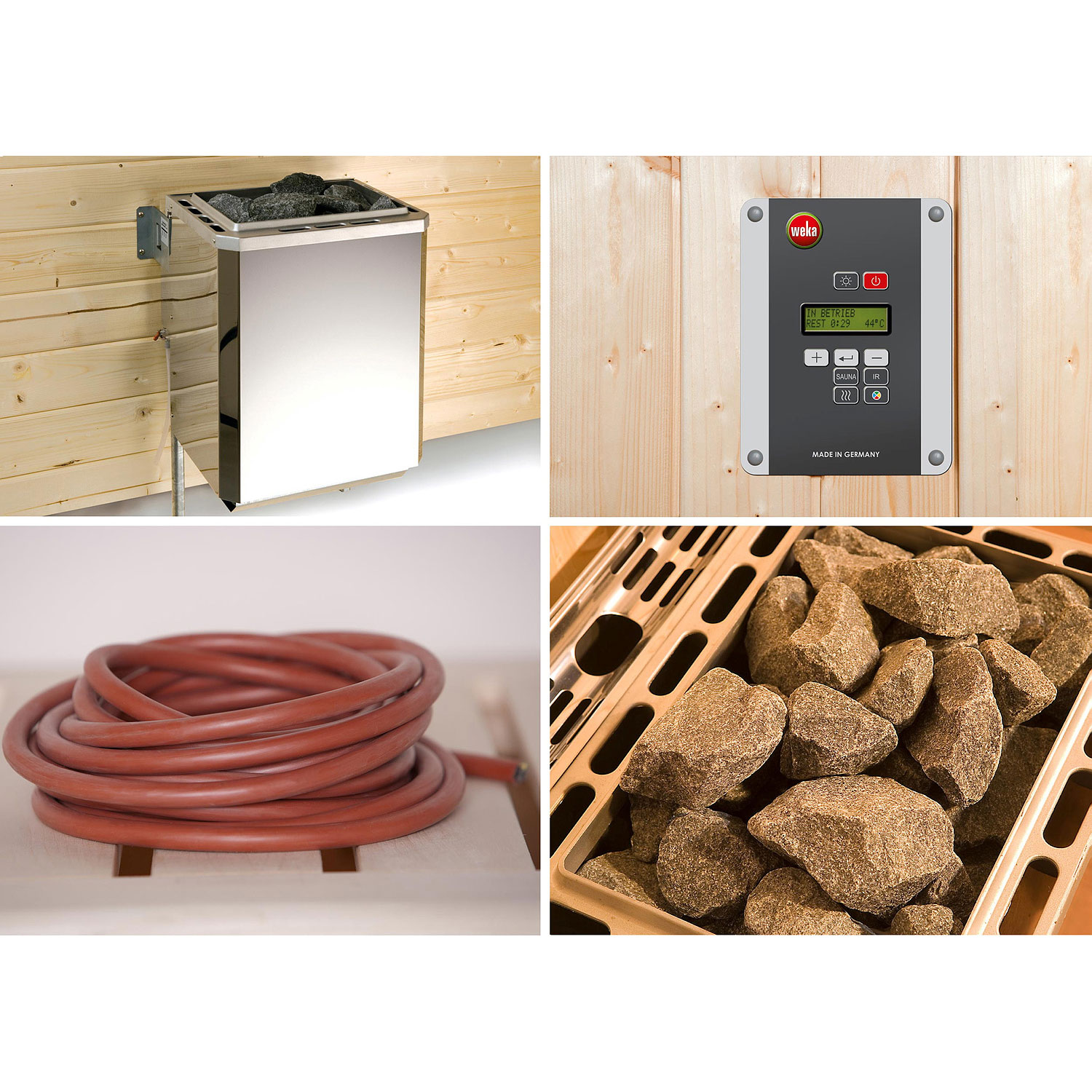 • inklusive 7,5 kW OS Saunaofen, digitaler Steuerung und Silikonanschlusskabel