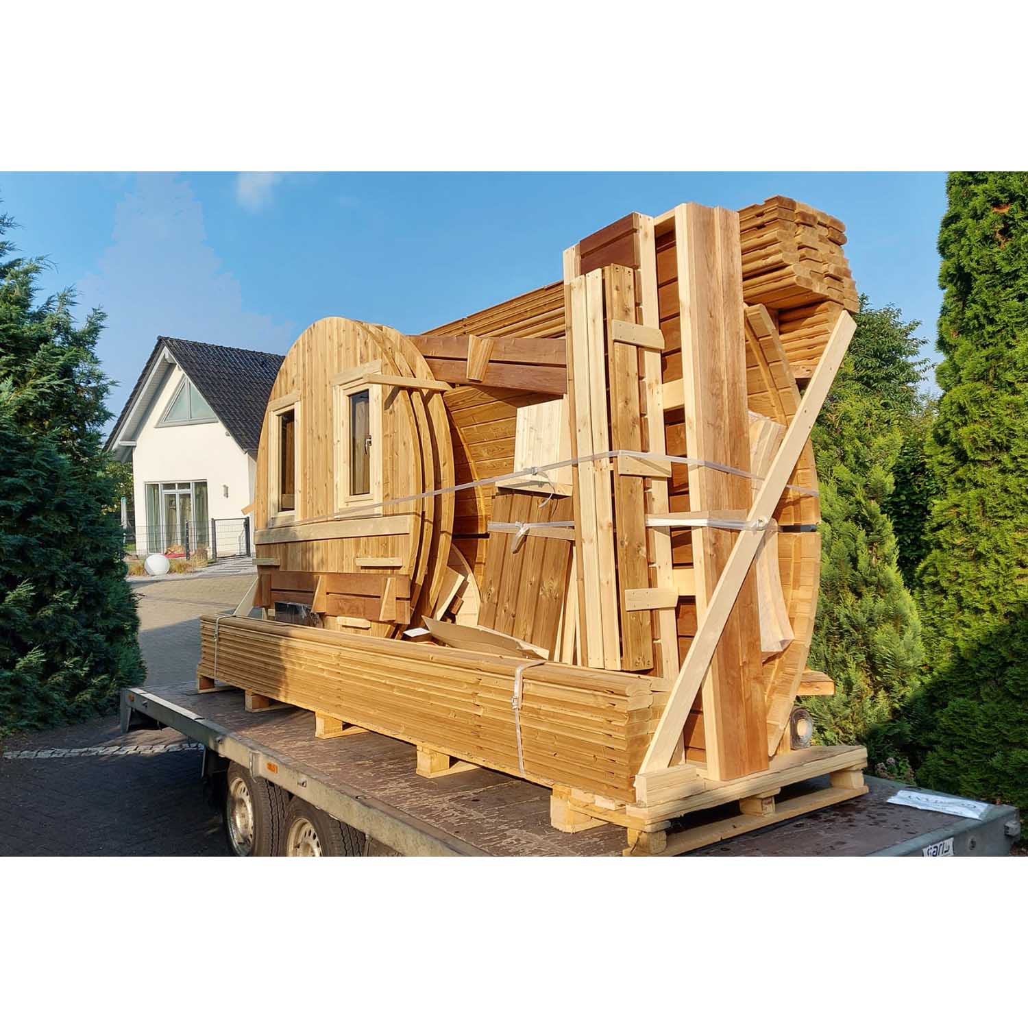 Das Saunafass Premium Svenja 1 bringt Wellness in Ihren Garten. Schwarze Dachschindeln runden die Optik perfekt ab und sind ein Highlight in jedem Garten. Ihren Saunagang genießen Sie auf einem der 2 Saunabänke. Zum Abkühlen nach dem Saunagang sind im Außenbereich zwei Bänke. Das Raumvolumen der Sauna beträgt 9,3 m³. Der Artikel wird in Einzelteilen geliefert und muss selbst montiert werden