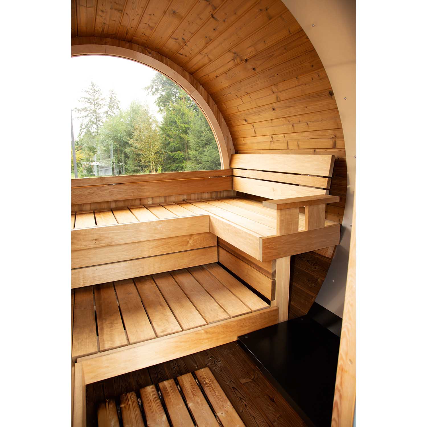 Das Saunafass Premium Svenja 2 bringt Wellness in Ihren Garten. Schwarze Dachschindeln runden die Optik perfekt ab und sind ein Highlight in jedem Garten. Ihren Saunagang genießen Sie auf einem der drei Saunabänke. Zum Abkühlen nach dem Saunagang sind im Außenbereich zwei Bänke. Das Raumvolumen der Sauna beträgt 9,3 m³. Das Saunafass ist größtenteils fertig montiert. Es müssen unter Umständen lediglich Arbeiten am Schornstein vorgenommen werden. Das gesamte Fass ist fertig montiert und die Bohlen sind mit Hilfe von justierbaren Edelstahl-Bändern fest miteinander verbunden. Sie müssen nur noch den passenden Ofen aussuchen und los gehts.