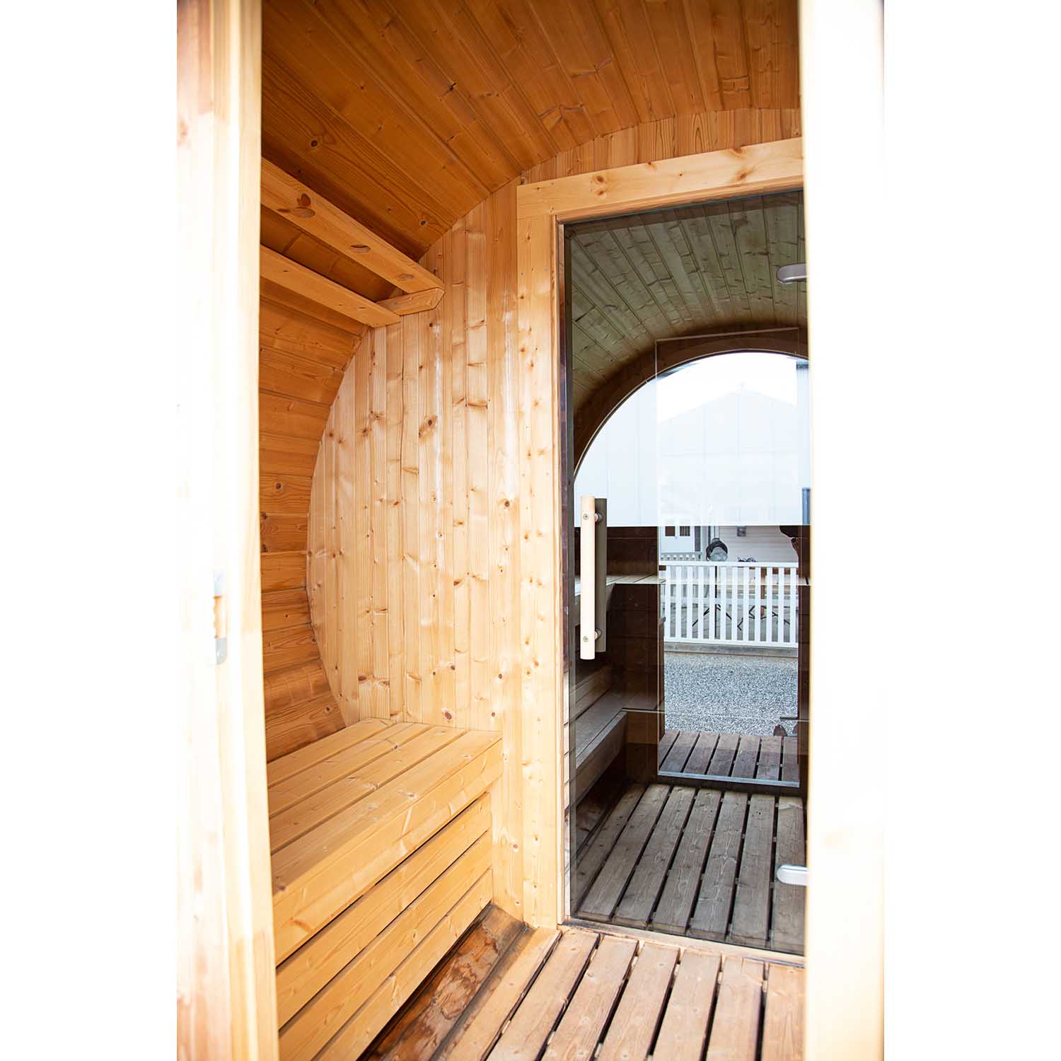 Wolff Finnhaus Saunafass Premium Svenja 2 Thermoholz montiert