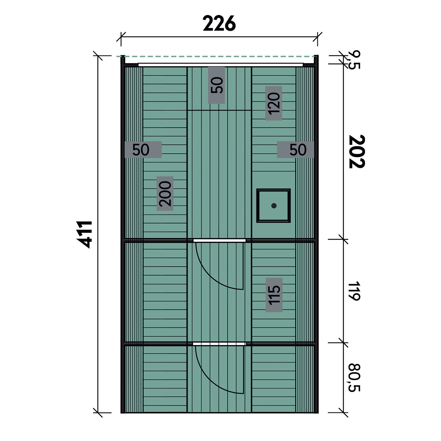 Das Saunafass Premium Svenja 2 bringt Wellness in Ihren Garten. Schwarze Dachschindeln runden die Optik perfekt ab und sind ein Highlight in jedem Garten. Ihren Saunagang genießen Sie auf einem der drei Saunabänke. Zum Abkühlen nach dem Saunagang sind im Außenbereich zwei Bänke. Das Raumvolumen der Sauna beträgt 9,3 m³. Der Artikel wird in Einzelteilen geliefert und muss selbst montiert werden