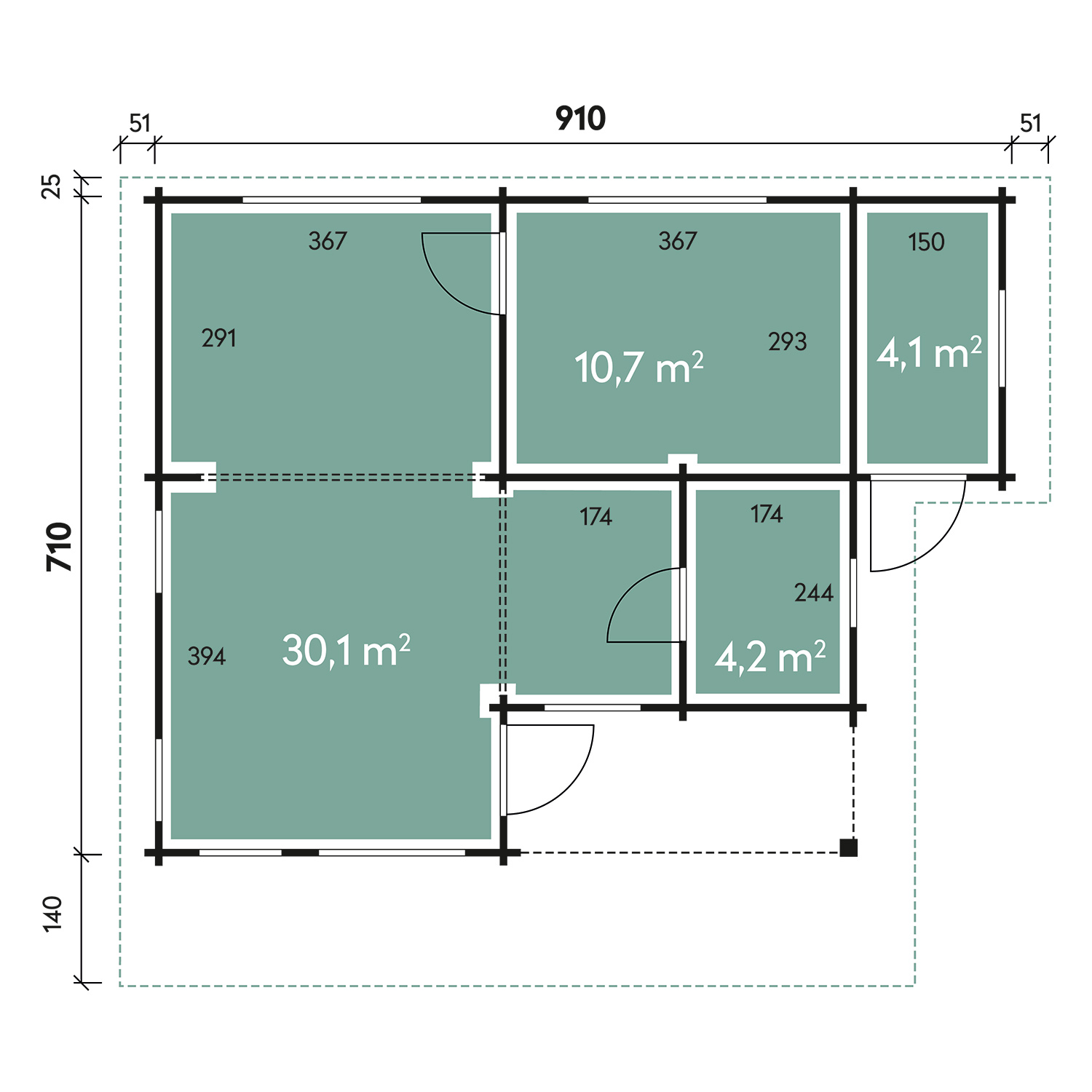 Das Wolff Finnhaus Odenwald 92 ist die ideale Wahl für ein komfortables Ferienhaus. Das Haus verfügt über 5 Räume, einen Schlafboden sowie einen Anbau, welcher praktisch als Gartenhaus für Ihre Terrassenmöbel genutzt werden kann. Die 8 Fenster sorgen für herrlichen Lichteinfall. 92 mm starke Wände schützen hervorragend vor kühleren Temperaturen. So können Sie Ihr Wochenendhaus auch im Spätsommer oder Herbst wunderbar nutzen. Die modernen Fenster und die halbverglaste Tür geben dem Ferienhaus einen eleganten Charme, der zum entspannen und erholen einlädt. Das Haus bietet eine Fläche von 65 m² und ein Raumvolumen von 179 m³.