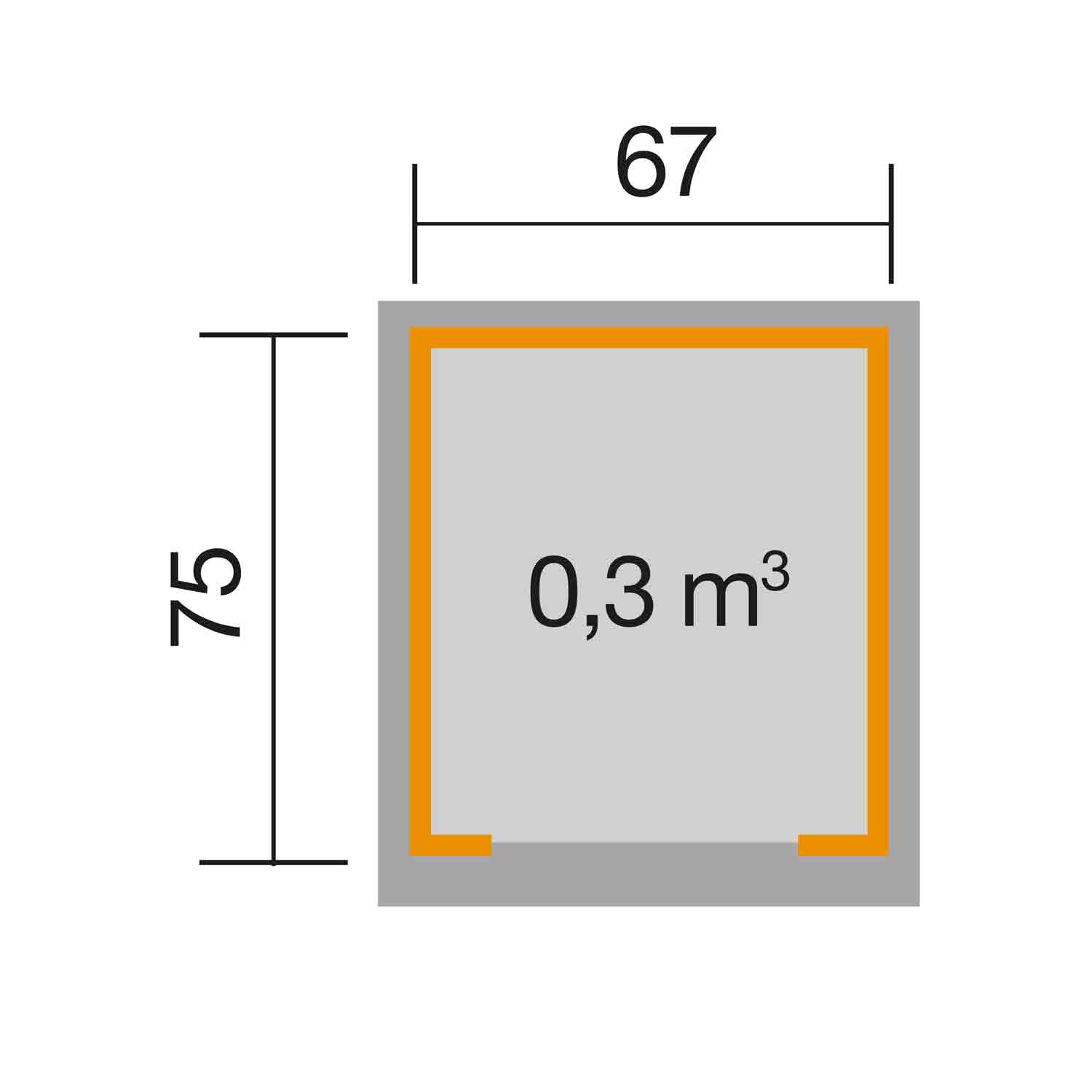 • Sockelmaß in cm: B 67 x T 75